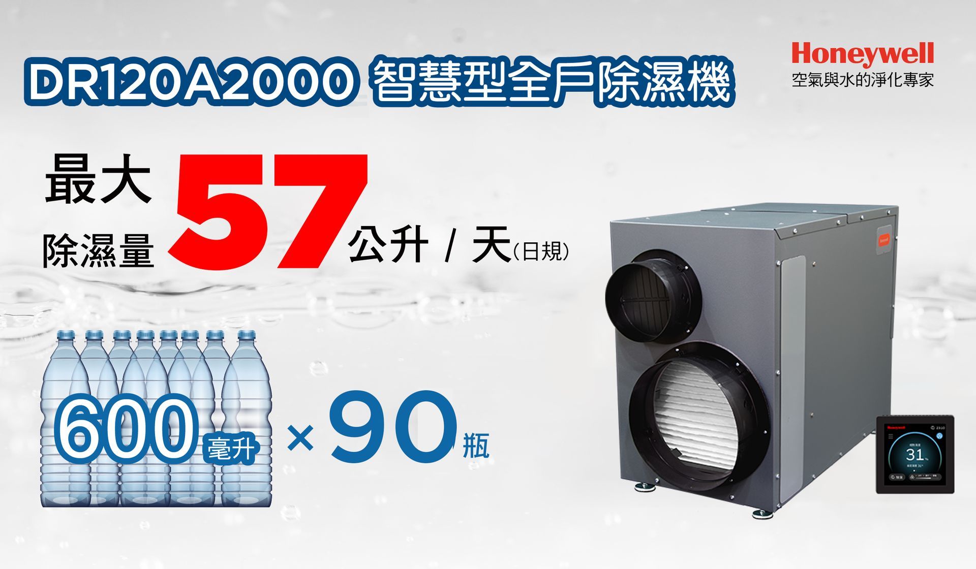 Honeywell 智慧型全戶除濕機搭載工業級偵測器,自動感應啟動除濕,高效穩定。全戶配管設計免倒水,智能濕控全天守護室內空氣。通過美國 UL474 安規認證,降低自燃風險,有效提升居住舒適與居家壽命。
