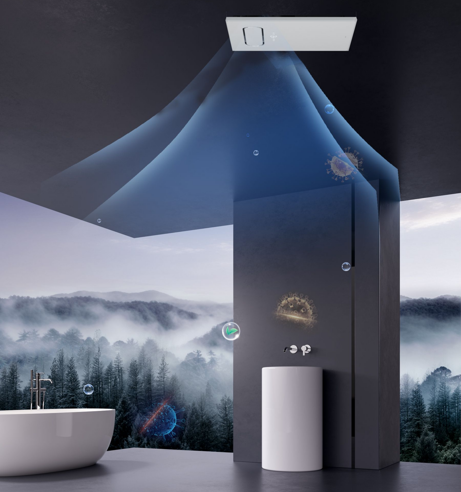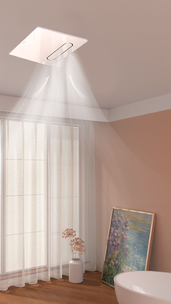 開啟吹風功能即同步運作,釋放大量離子,有效吸附細菌與甲醛,帶動浴室空氣循環,快速淨化空氣,讓浴室更清新、使用更安心