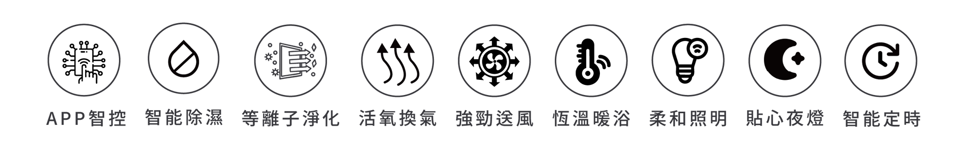 照明 X 取暖 X 涼風 X 換氣 X 除濕 X 定時 X 安心沐浴