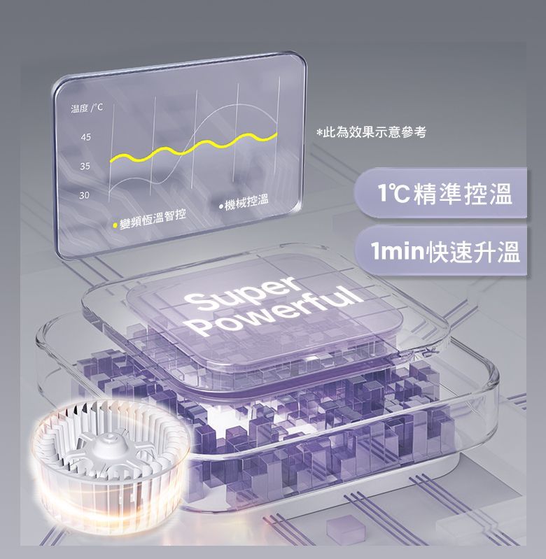 高效率驅動演算法,直流變頻馬達將恆溫智控32℃~45℃精準掌控每一度,為浴室建造沐浴恆溫舒適溫度